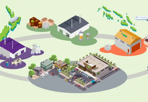 A cradle-to-grave dairy supply chain assessment has been undertaken using a case study of a New Zealand dairy supply chain, comparing business as usual with changes to: